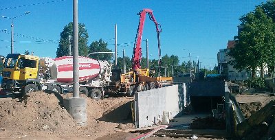 Przygotowanie do betonowania przy podziemnym przejściu dla pieszych