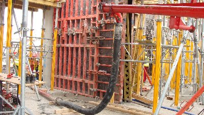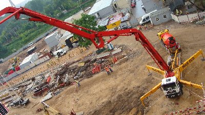 | Using a long hose plus a tremmie pipe to add reach to the boom is poor practice. It overloads the boom. To gain the additional length to reach the far end of the pour, it is acceptable to add hose to the boom, but not have the boom support this added weight. Line-pump off the tip for the initial reach, then once that area has been filled, you can go to using the boom as it is designed, with no more than 4 meters of hose suspended on the tip. This type of practice stresses the boom and subjects it to additional loading that it was not designed for. It may not fail immediately, but some of it's service life has been compromised. |